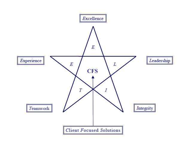Integrity: Providing client focused solutions that are complete and business and issue specific, adhering to the highest professional standards.
